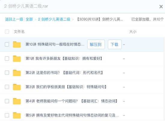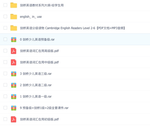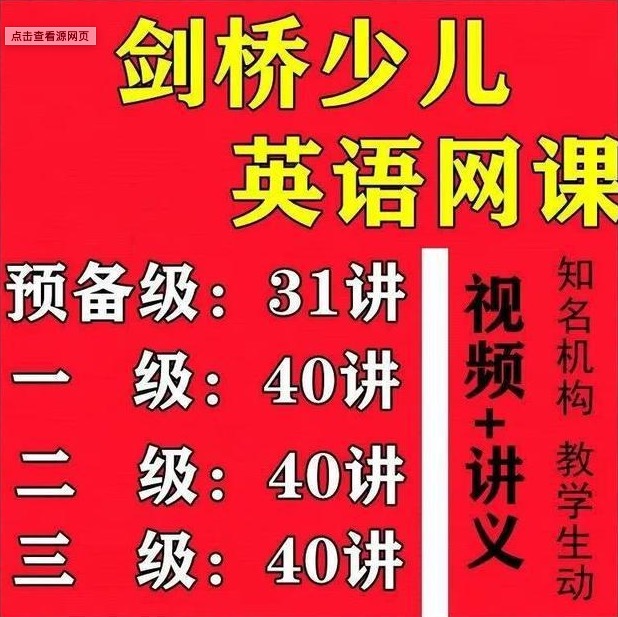 【学而思】剑桥少儿英语预备级、一级、二级、三级视频+课件+词汇